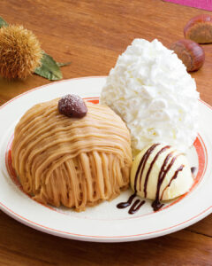 秋を代表するスイーツ“モンブラン”をかたどった『 モンブランパンケーキ 』は、